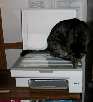A couple of years back I had a small inexpensive printer and the only thing it did was print. You could see down in it when it printed and I had to be careful because Jessie would jump up beside the printer and stick her paw down in it. Then she would jump down and try to grab the paper as it came out. When the printer quit working I did and still do believe Jessie had a little something to do with it.