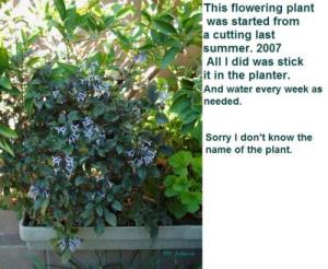 Dear Guest Post. Some plants will root in water. And some need to be plunked in the ground right off and some will not start at all. So trial and error is what I do. Remember I'm OLD and still have so much to learn. Geraniums can be started right in the ground if you live in a mild climate. Otherwise plant in pots that can be moved indoors. ThriftyFun has a link to seed swap and some people will swap cuttings. You'll have fun chatting with gardeners there. Just go for it!! GG Hugs,Vi