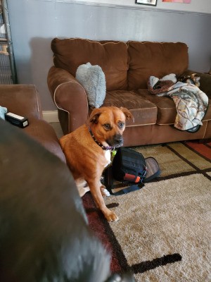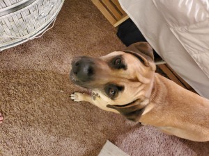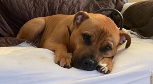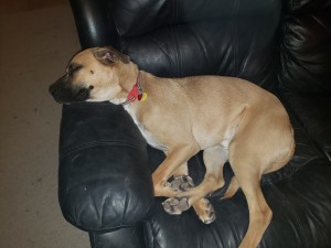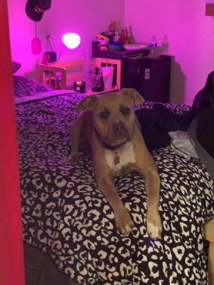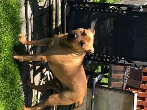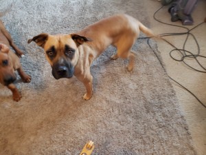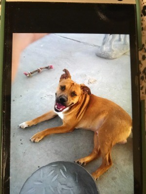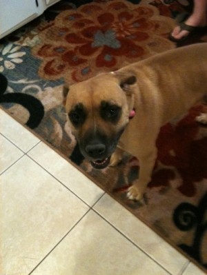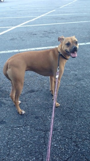 This is Cinnamon she is two and a half and a boxer mix we believe that she is mixed with Rhodesian ridgeback.