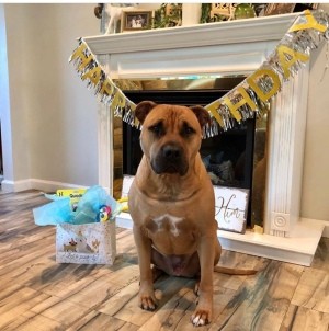 She could basically be my Zoe's twin. We rescued our beauty 4 years ago, and think she's about 8-9. They called her a Staffordshire Terrier mix, but we're pretty sure she is part Boxer :) Beautiful!