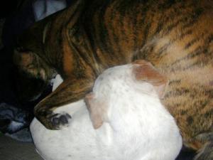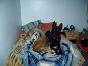 Buddy has to sleep between us and he sometimes stays in bed after we have gotten up for breakfast. Boy, can he sleep and there are times when I can't tell who is snoring; My Husband or Buddy. They are just like your kids; you worry about them, care for them and have to discipline them, too!