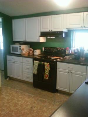 I just did the black and white kitchen; love it! Used a dark Kelly green for two walls of the kitchen, and a lighter 'Silk Leaf' color for the opposite wall. Took a third, lighter green (almost white) to take around into the dining room and living room. Waiting still to do floors.