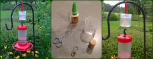 Please don't use fly catcher strips. I have seen in my clinic, hummingbirds that have been stuck in them and it ripped their feathers out. It is much easier to purchase an ant moat or make your own.