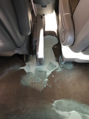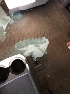 Same happened to me, as seen in the pictures. I don't think she put the lid on tight enough because I got home and the whole Gallon dumped over in my van. If the lid had been properly sealed this would've never happened. I filed a claim with Walmart I hope they replace my carpet because I will never get that out. And it needs a good detail in too. There is paint everywhere!