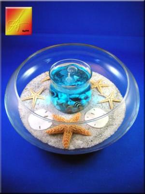 I use seashells with centerpieces. I set the seashells on a bed of craft or clean beach sand and put a small votive candle in the middle. It's stunning and beautiful.