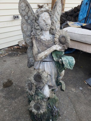 I worked for domestications. I designed the sunflower fairy option. Currently planning to refurbish her. She's well worn for sure. Going to make her copper with verdigris