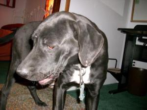 This is Santo.He is a great dane mixed with what we think is a lab.He is about 9 months old and very loving.You would usually think that the great dane is this big mean dog, but my dog is a big teddy bear a very strong one.He never gets tired of playing fetch and wresting with you.If you are ever looking for a dog I suggest that you get a Great Dane.They are so much fun to watch grow up.